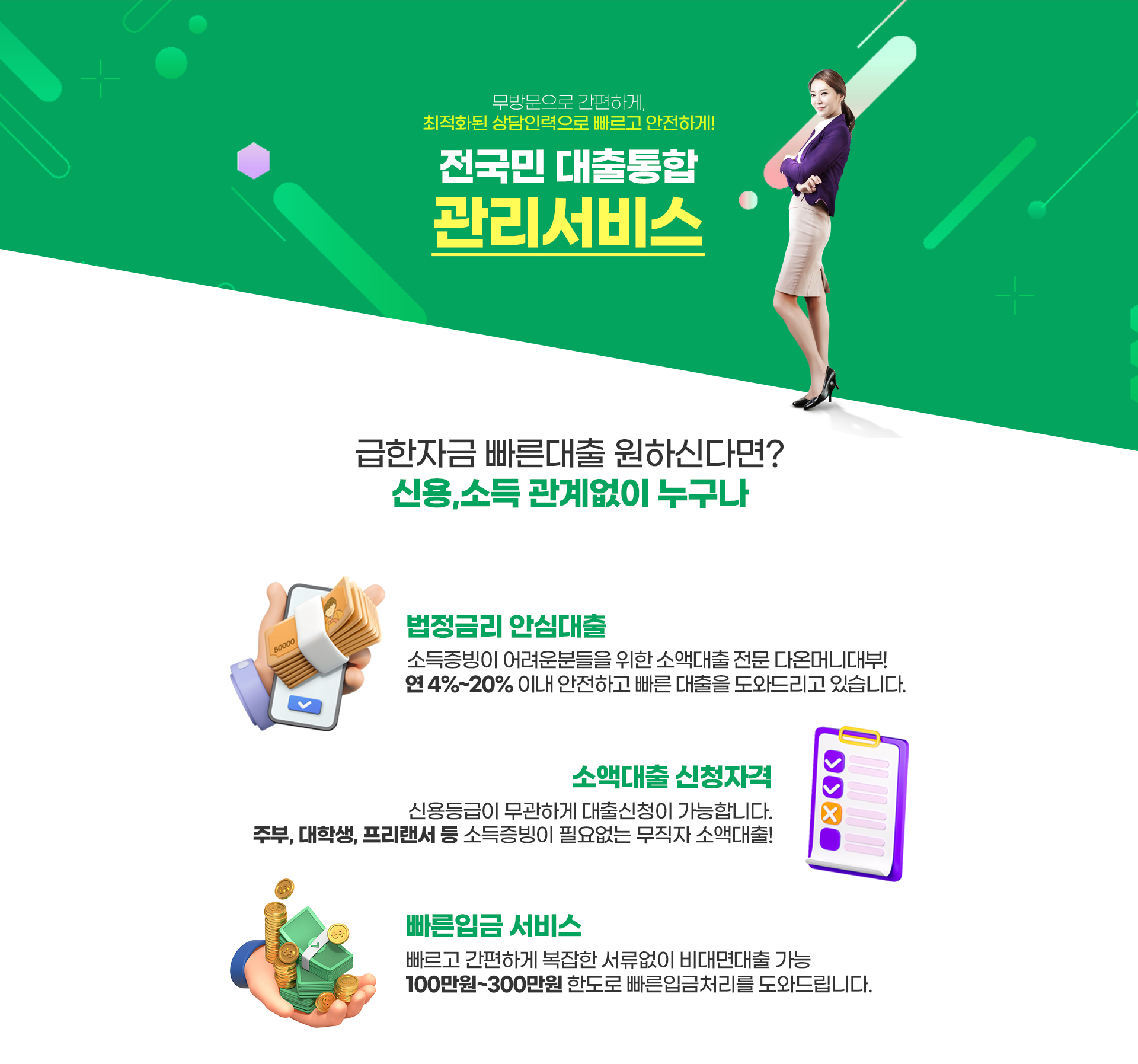 대출중개수수료 없음 중개수수료를 요구하거나 받는것은 불법으로 대출과 관련된 일체 수수료를 받지 않습니다.